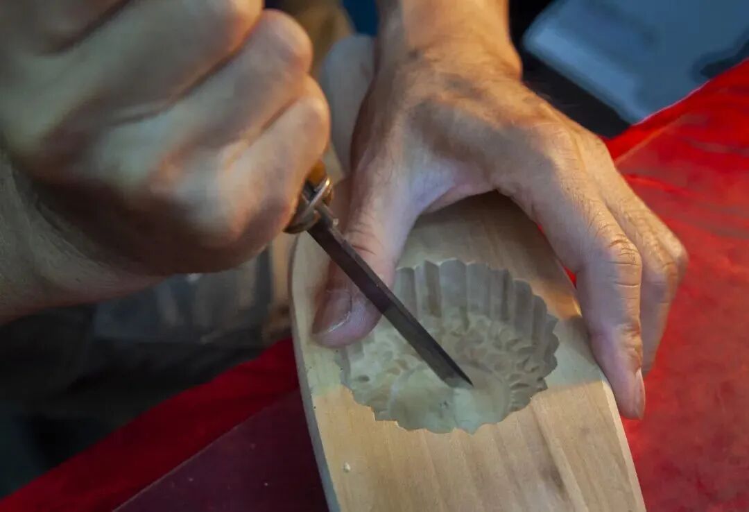 “食在广州”的美味,不仅在于舌尖,更在塑造它的模具里,一槌一刻刀,一枚沉淀了百年匠心质朴的饼印,在雕琢中,棱角、细节逐渐明晰起来。这门省级非遗技艺,讲究的是分毫不差的精准。饼印世家“余同号”便以工艺精湛闻名,自1865年创立,迄今已有150多年历史。它不仅是木雕技艺的体现,更是广府饮食文化与节庆习俗的活态载体。