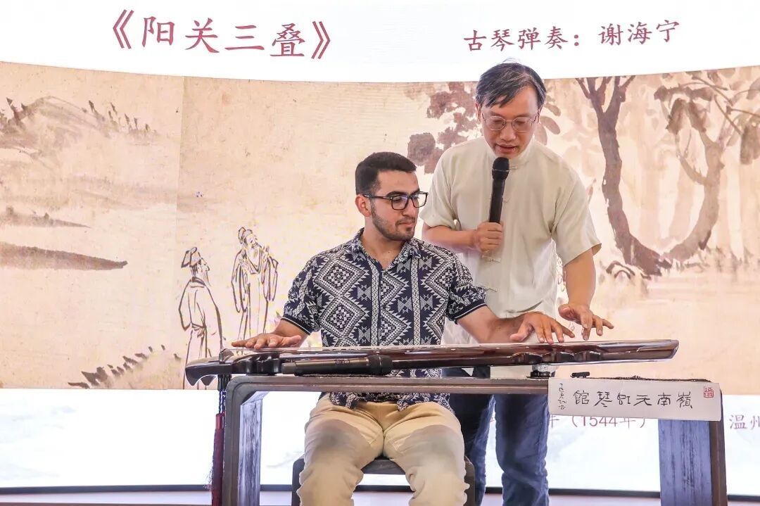 图示:2025年海丝文旅周期间,广交会客商学习岭南古琴。