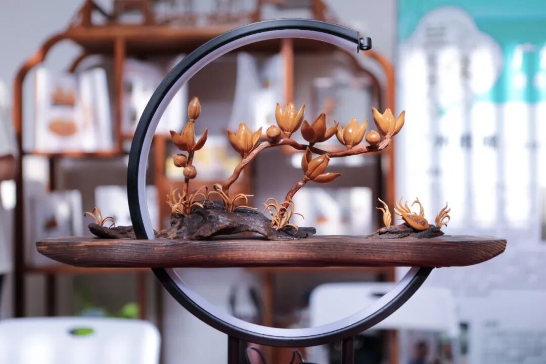 广州榄雕市级代表性传承人曾宪鹏为2025年“兰缘盛荟·花开越秀”文旅周特别创作的《兰语清风》台灯。