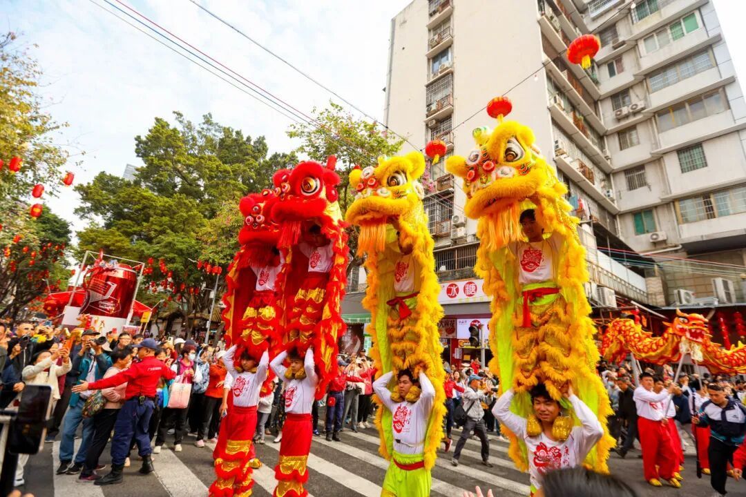 图示:2026年越秀西湖花市期间的醒狮巡游。